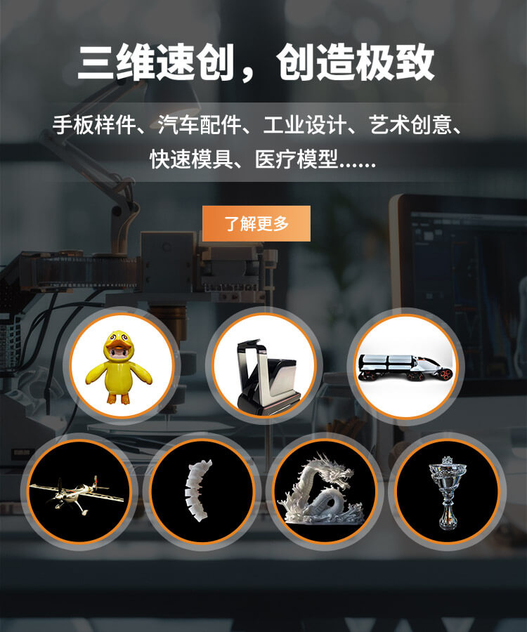 我们是一家集专业制造、上色喷绘、拆解组装等3D打印问题综合解决服务商。手板模型快速制造,以及小批量生产,检测,设计,逆向扫描等是我们的主要业务。我们还荣获了国家高新企业认证并且还通过ISO9001质量体系认证。我们致力于为客户提供新产品设计阶段的验证、改进、 试制到产品批量出货一站式生产配套服务,产品方案以最低的成本快速、直观、准确的原型化、产品化,为广大客户提供最优质的新产品开发方面的服务!